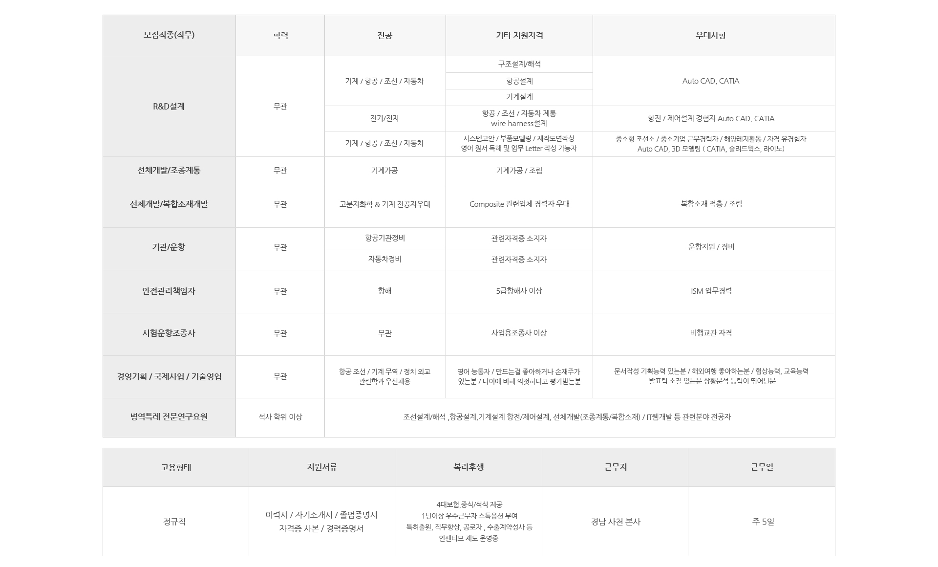 모집분야 R&D설계 | 선체개발/조종계통 | 선체개발/복합소재개발 기관/운항 | 안전관리책임자 | 시험운항조종사 경영기획/국제사업/기술영업