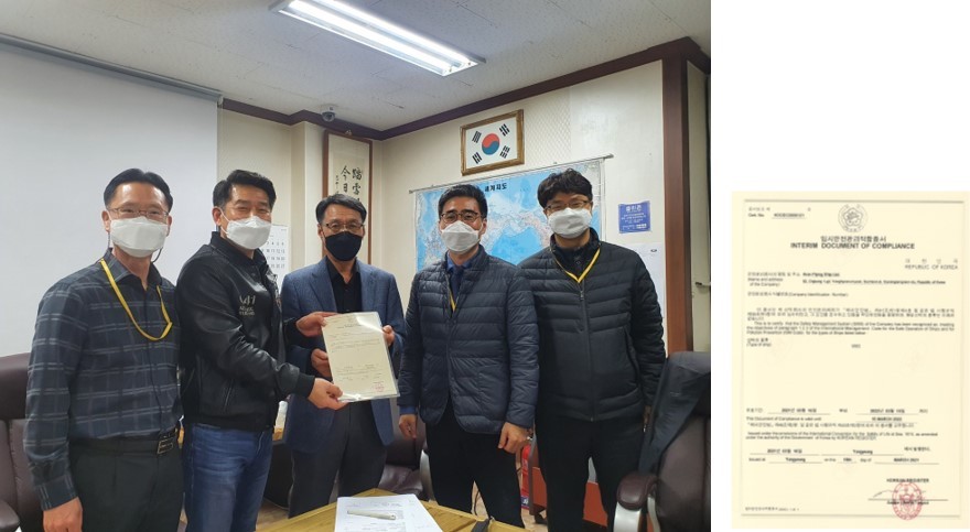 ±¹Á¦ÇØ»ç±â±¸(IMO) ±¹Á¦Çù¾à¿¡ µû¶ó ¾ÈÀü¿îÇ× ÀûÇÕÁõ¼(DOC, SMC) ȹµæ ¿Ï·á